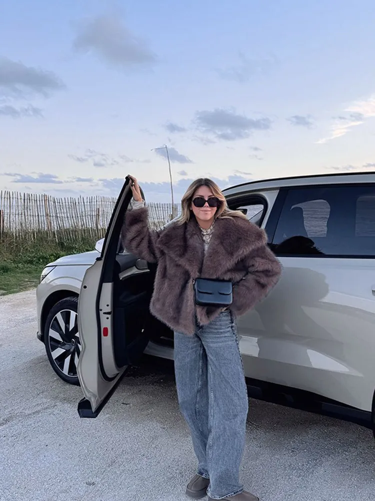 Stay warm and glamorous this season with the PlushElegance Faux Fur Overcoat—your go-to coat for winter sophistication and comfort.