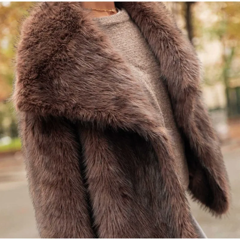Wrap yourself in luxurious warmth and style with the PlushElegance Faux Fur Long Overcoat. This stunning winter trench coat combines rich dark brown faux fur with a thick, fluffy fleece lining for the ultimate in coziness and sophistication. Whether you're braving chilly winds or adding a chic touch to your winter wardrobe, this plush outerwear will keep you both stylish and warm.