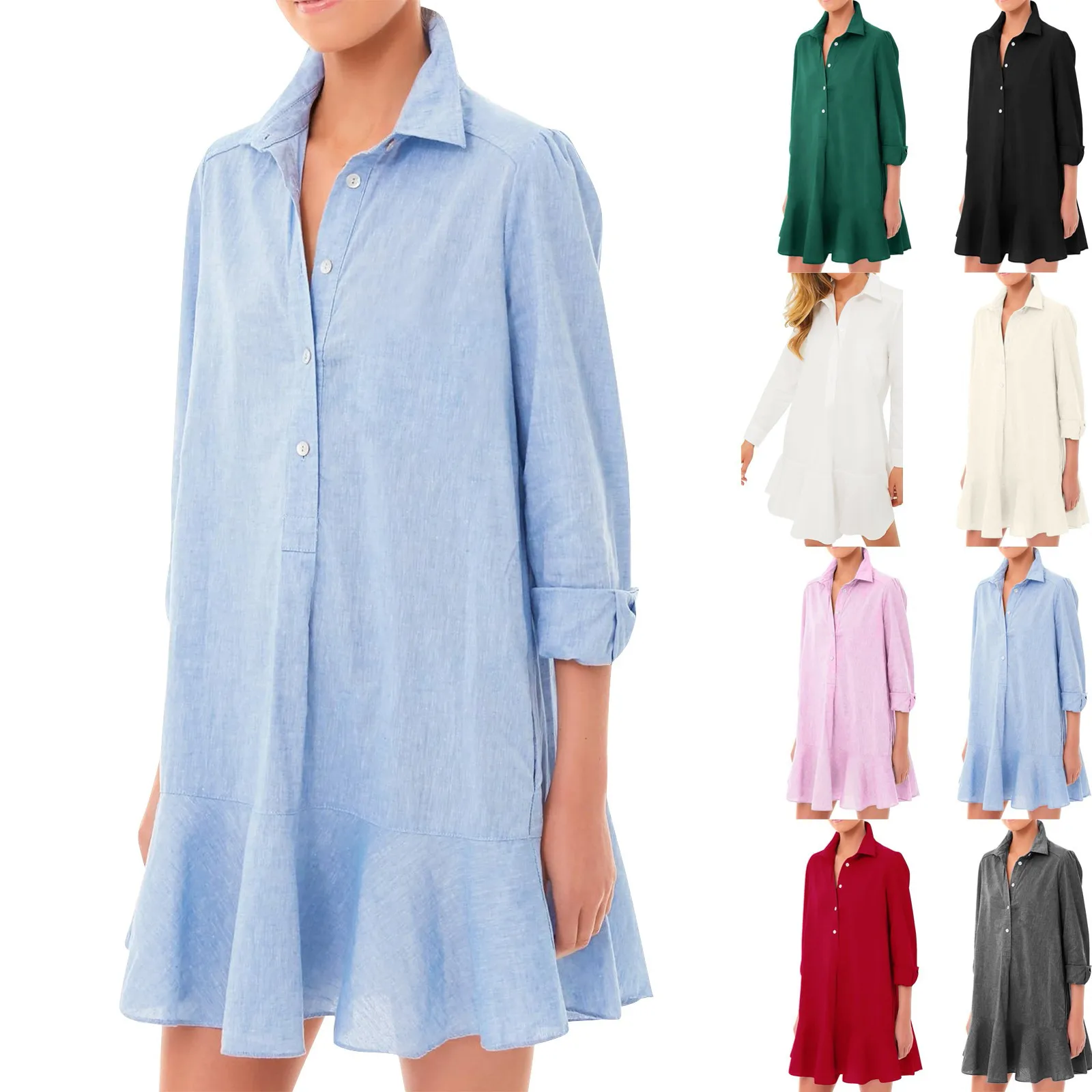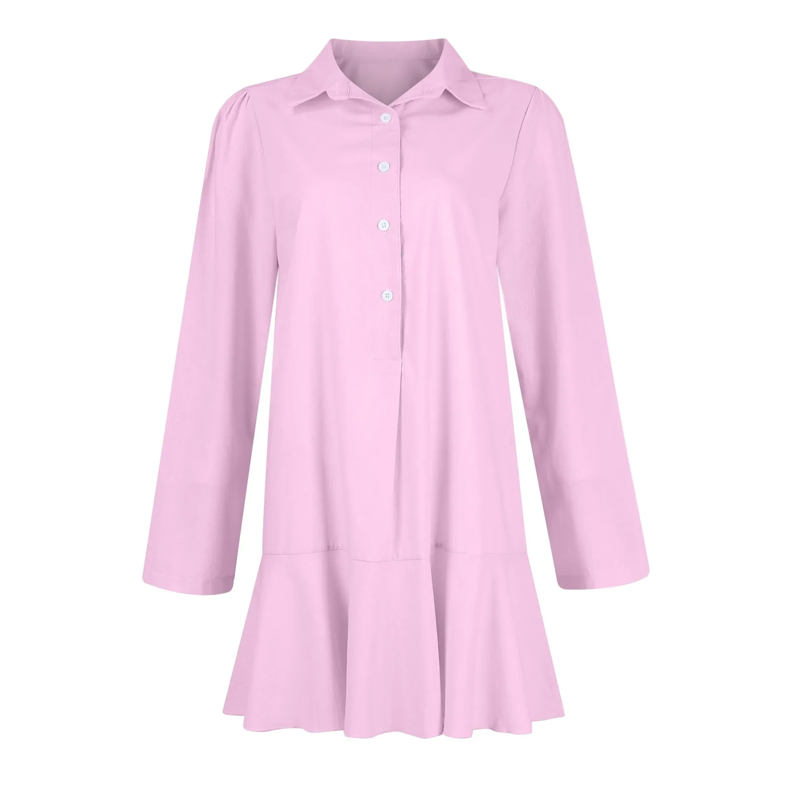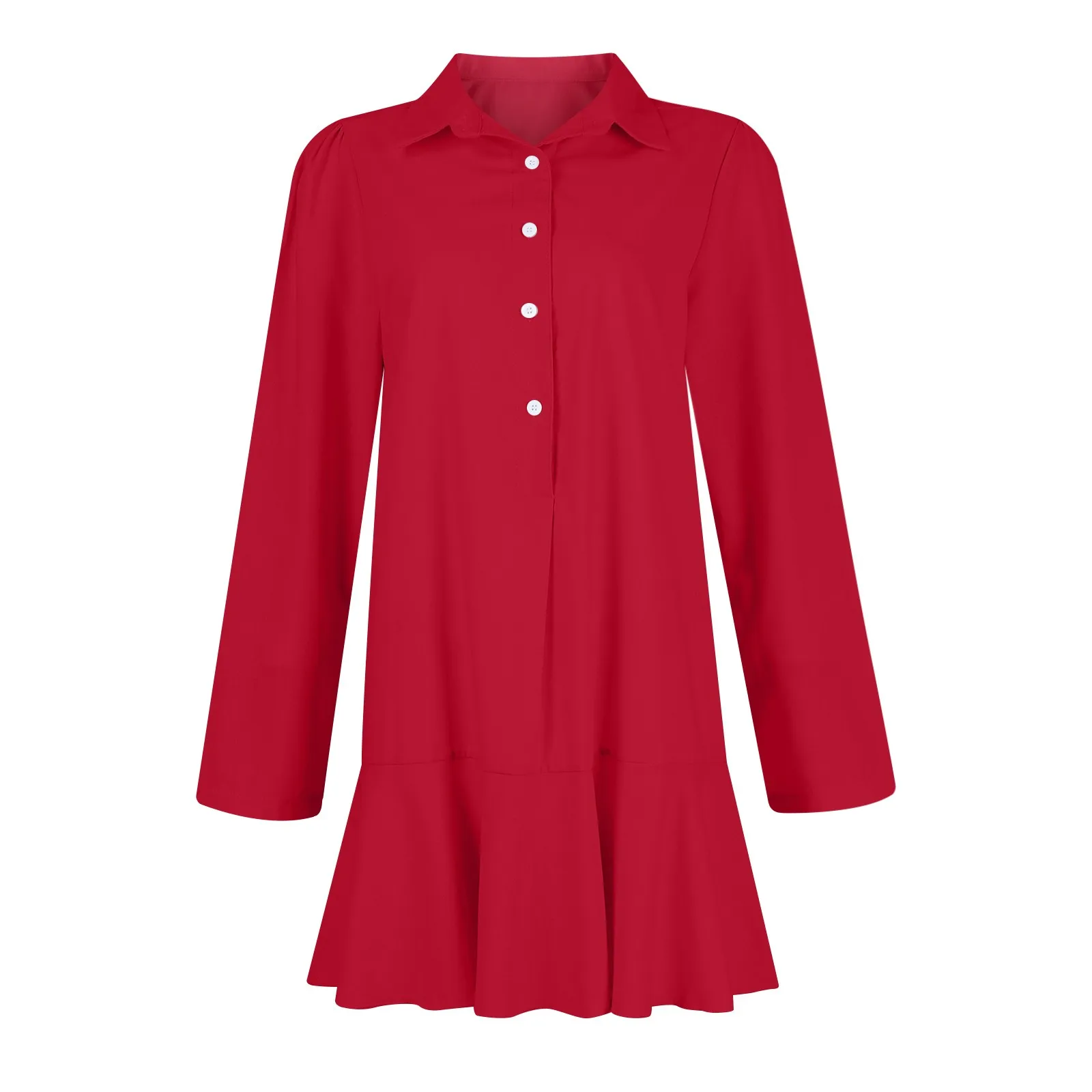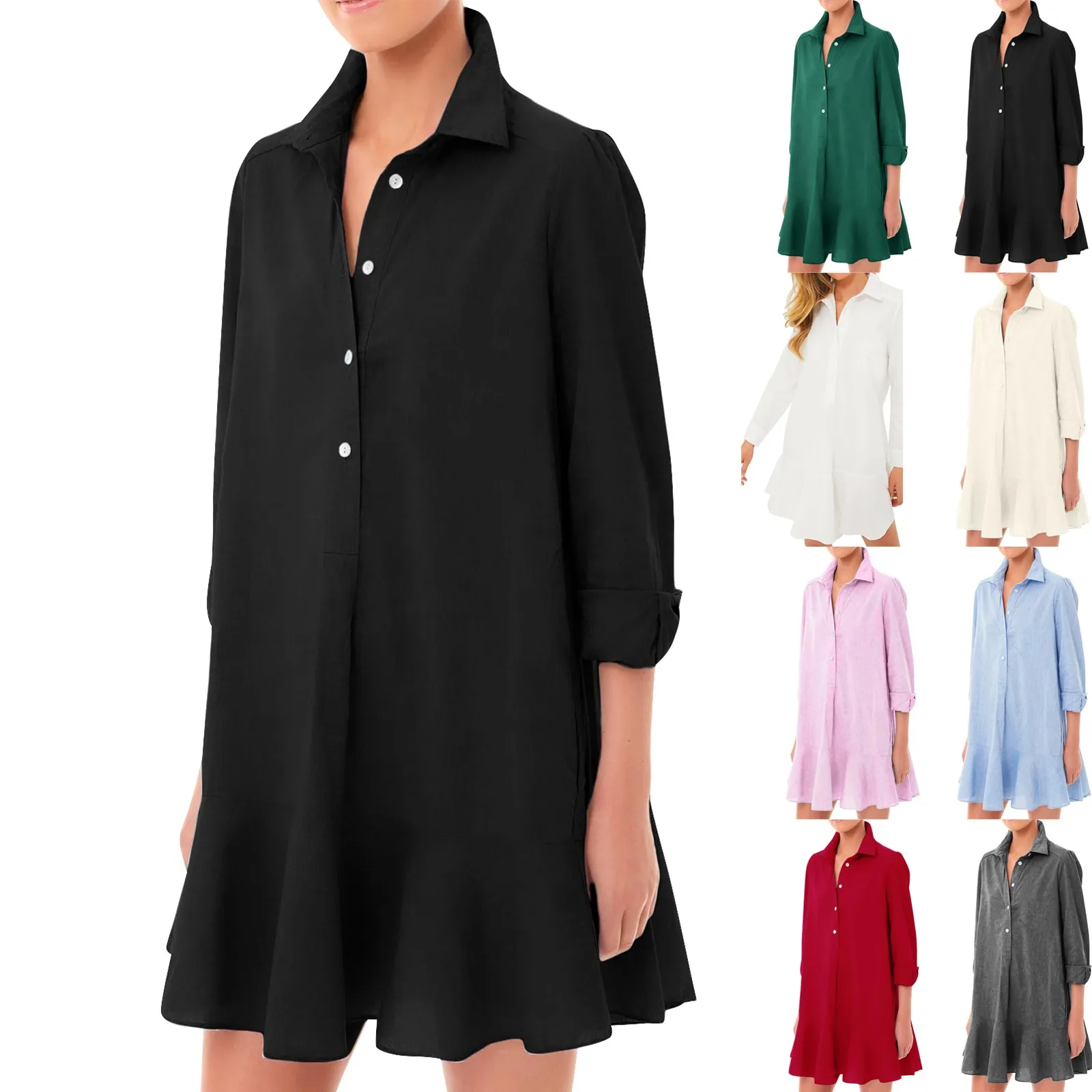Elevate your everyday look with the RuffleEase Classic Shirt Dress, designed for women who love a blend of comfort and sophistication. This loose-fit beauty features a chic half-open shirt design, playful ruffle hem, and timeless solid colors, making it your go-to dress for work, casual outings, or weekend dates.