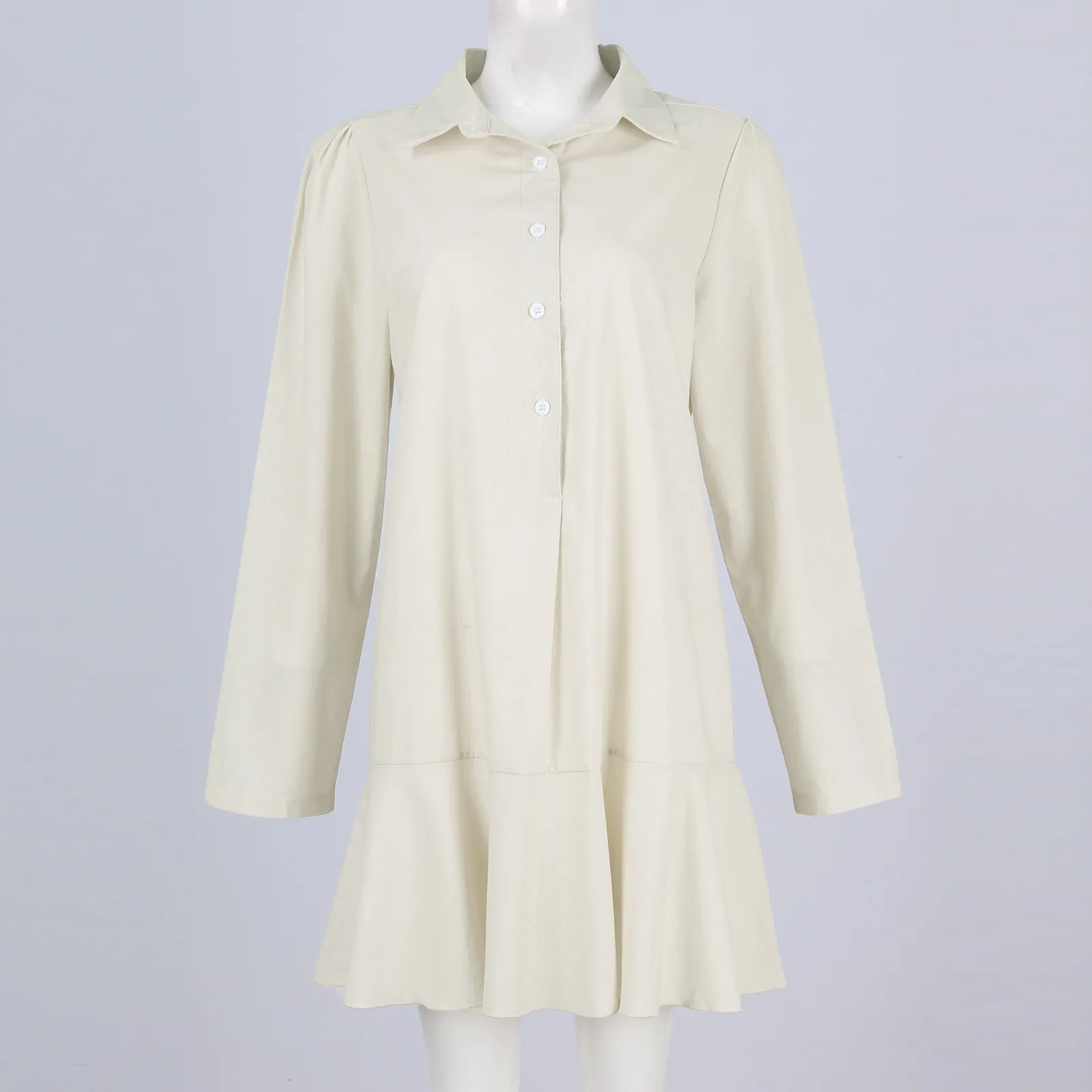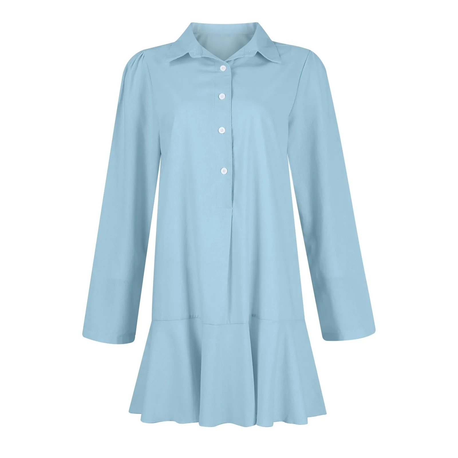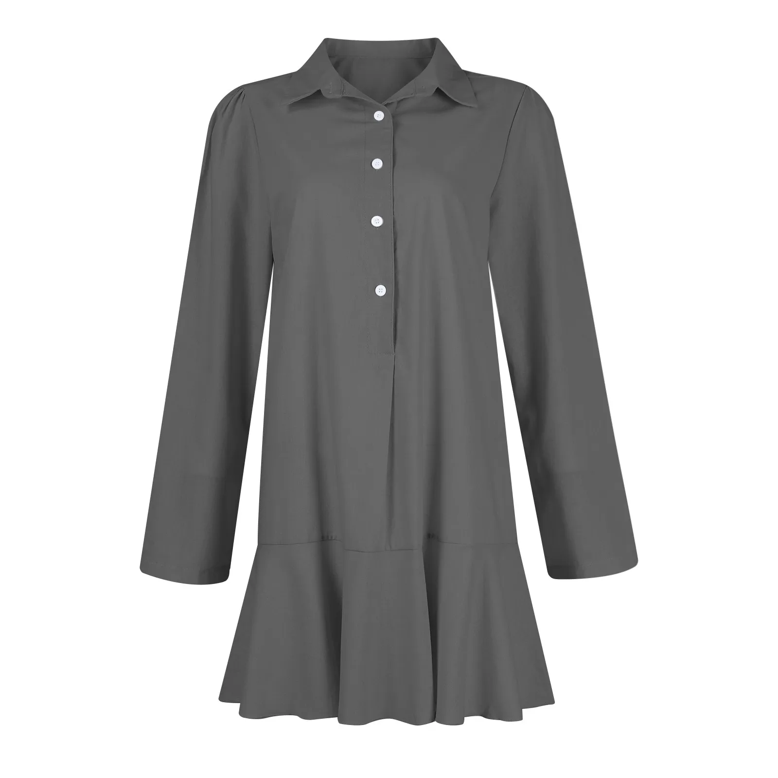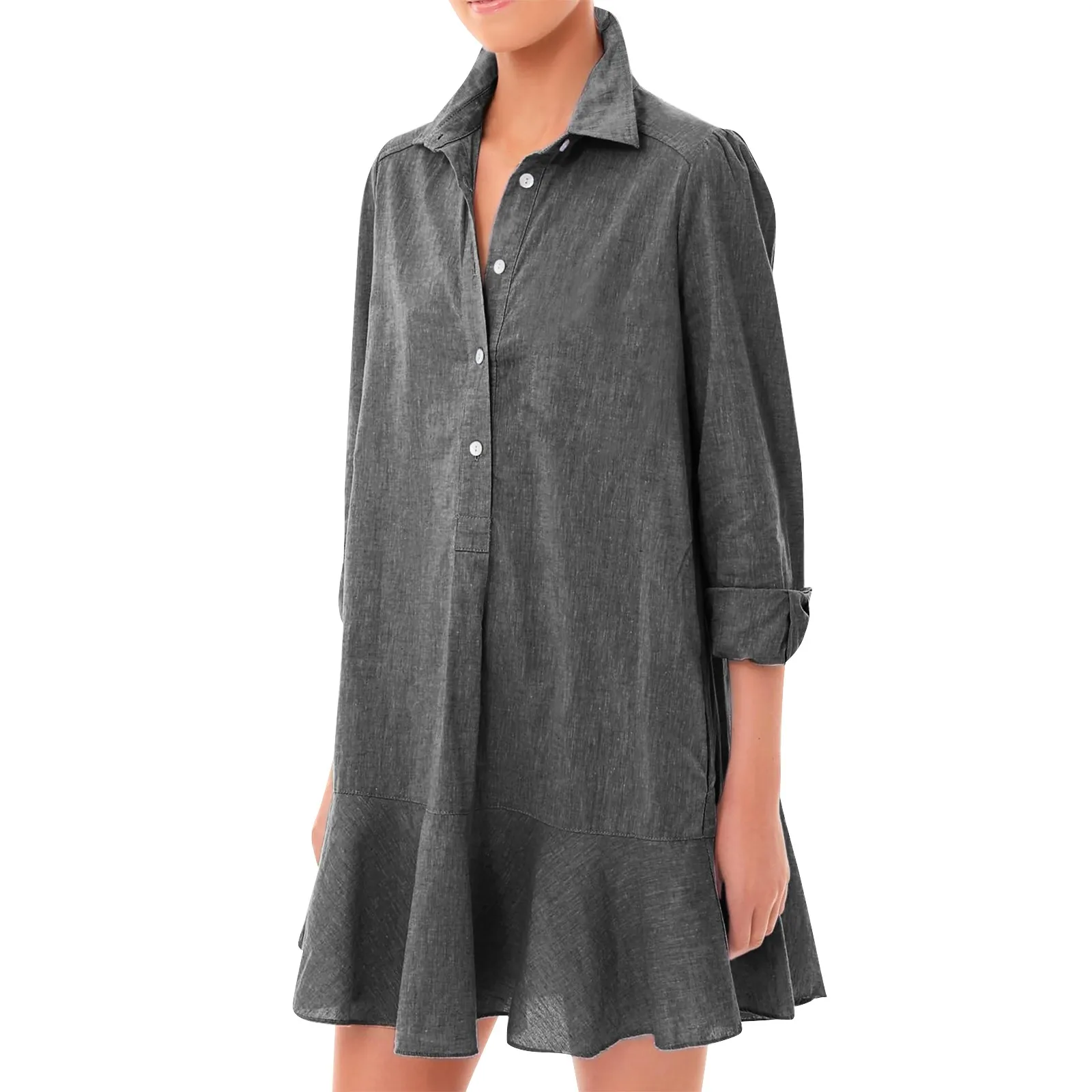 Women's Fashion Casual Half Open Shirt Hem Ruffle Classic Solid Color Dresses