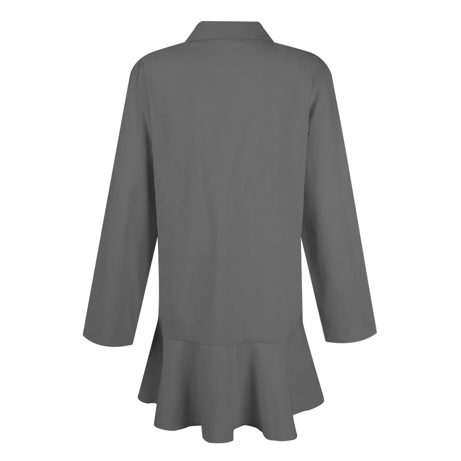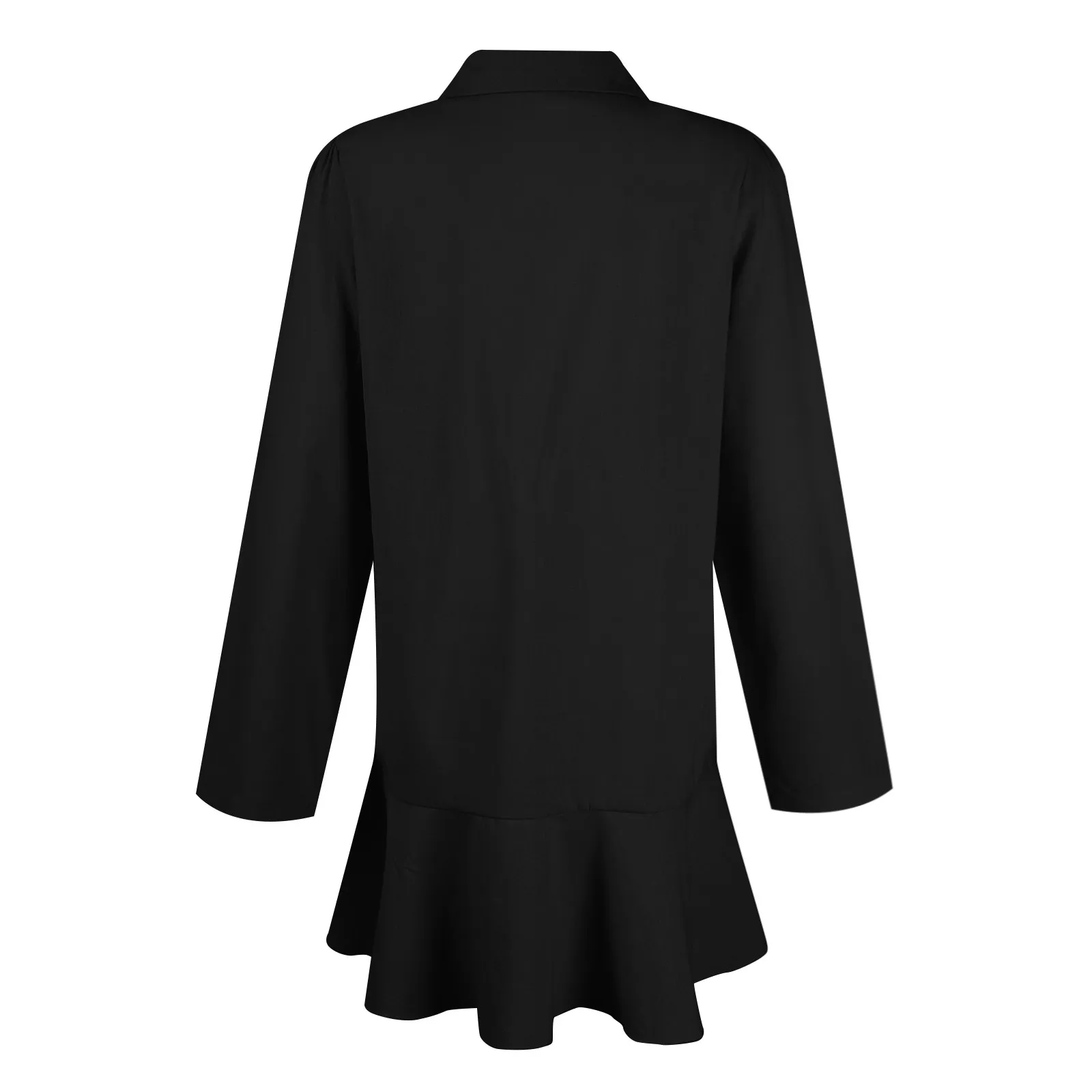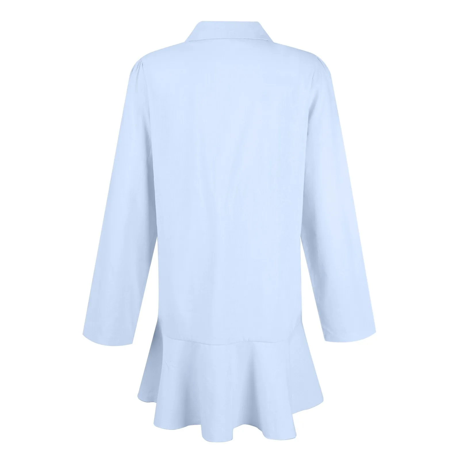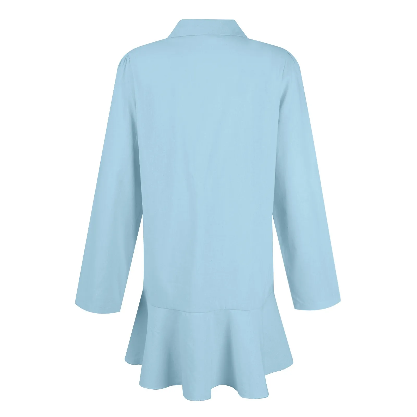 Women's Fashion Casual Half Open Shirt Hem Ruffle Classic Solid Color Dresses